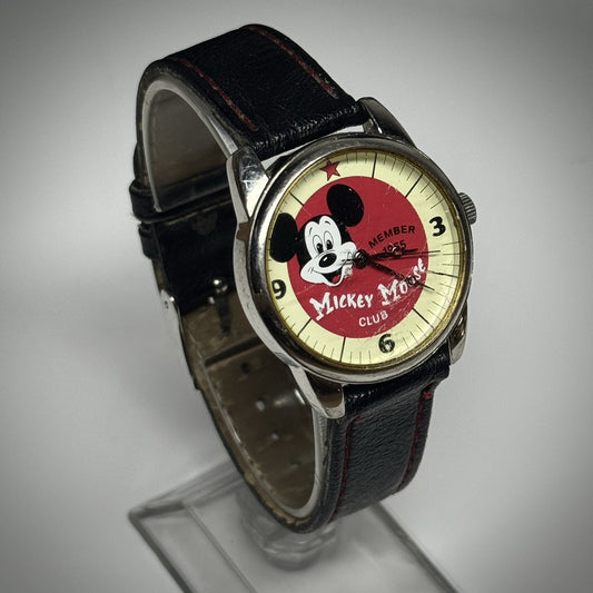 Vintage Bradley Disney Mickey Mouse Watch Swiss Mechanical Movement Red Leather