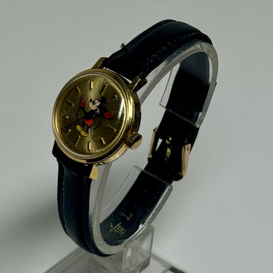 Vintage Bradley Mickey Mouse Swiss Made Walt Disney Mechanical Watch Golden Case