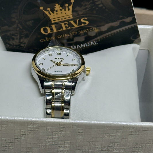 OLEVS Womens Watch Gold Silver Two Tone Roman Dial Day Date Stainless Steel New
