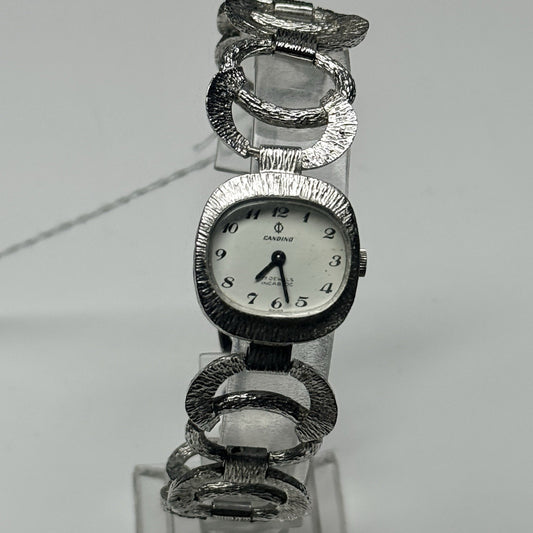 Vintage Candino Swiss 17 Jewel Incabloc Ladies SS Textured Bracelet Runs Great