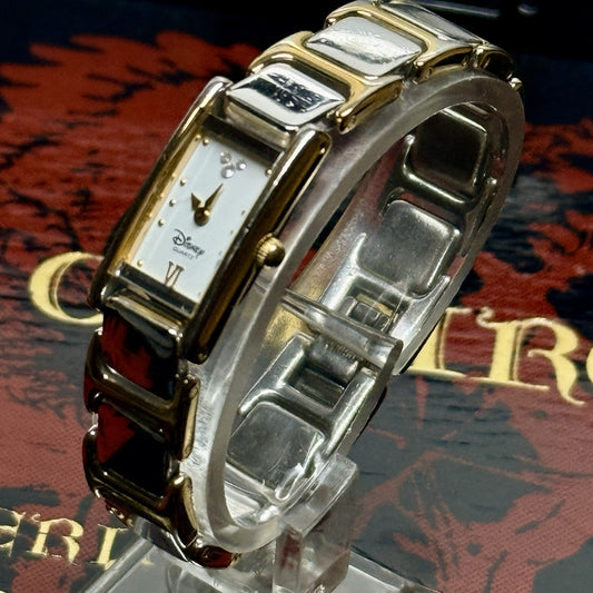 Disney Time Works Ladies Mickey Head Two Tone Bracelet Quartz Watch Japan New Ba
