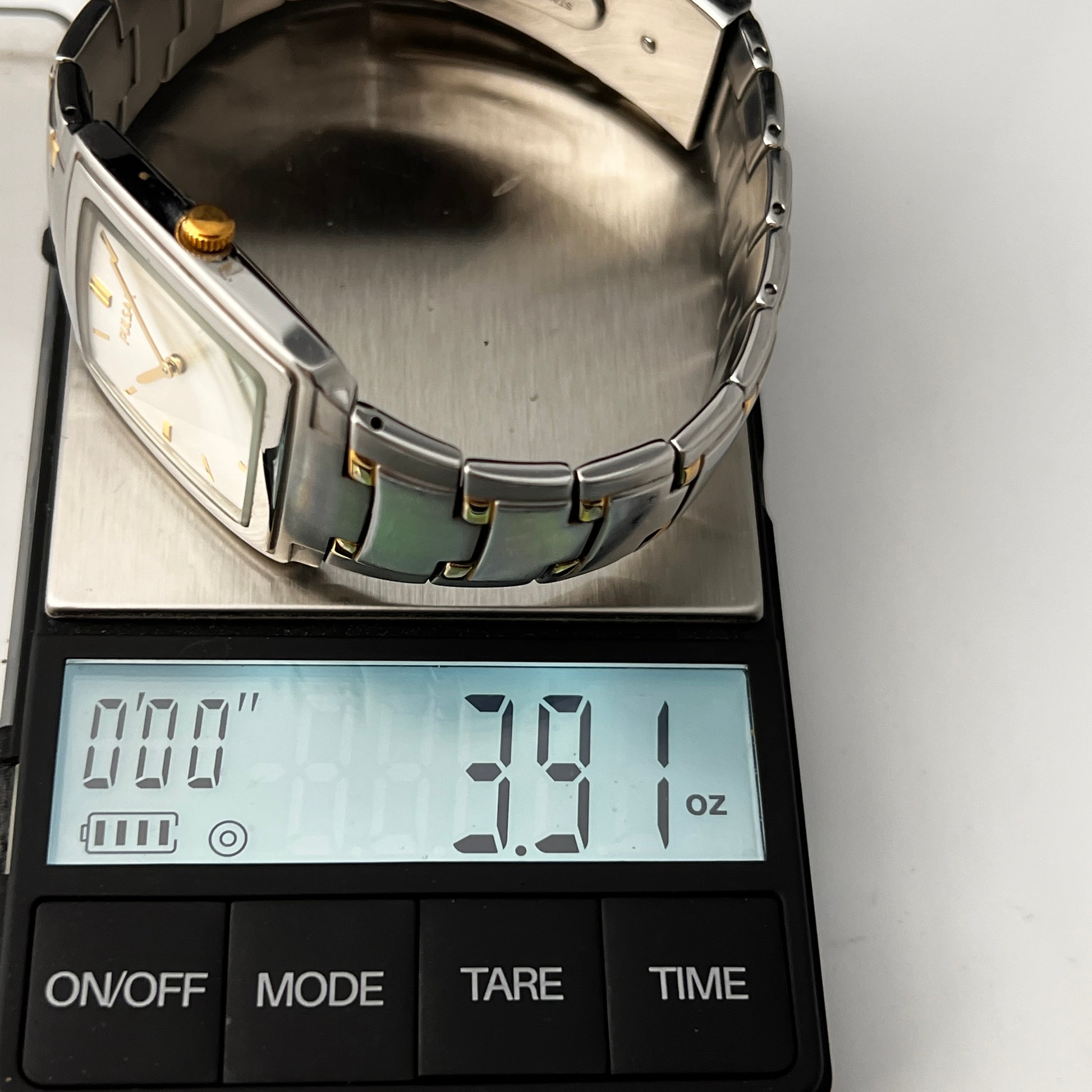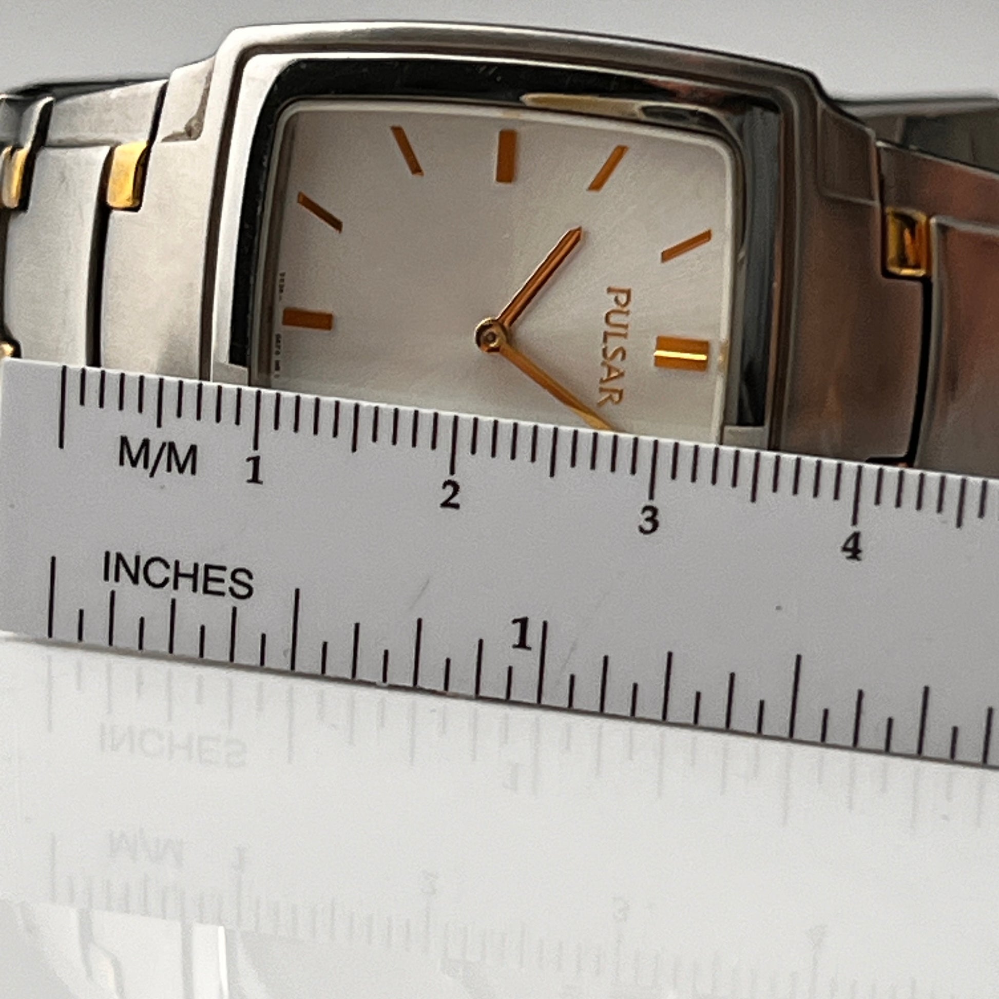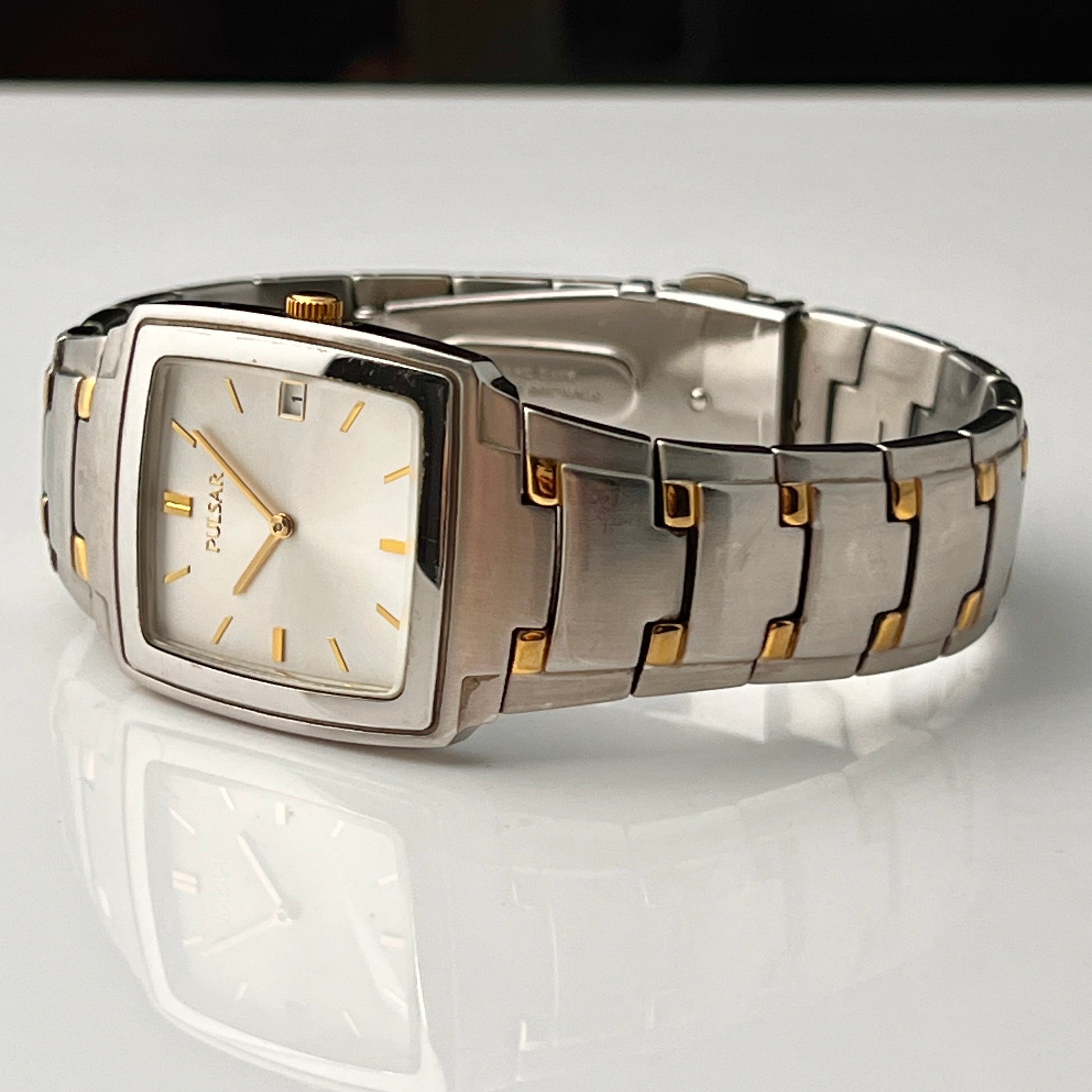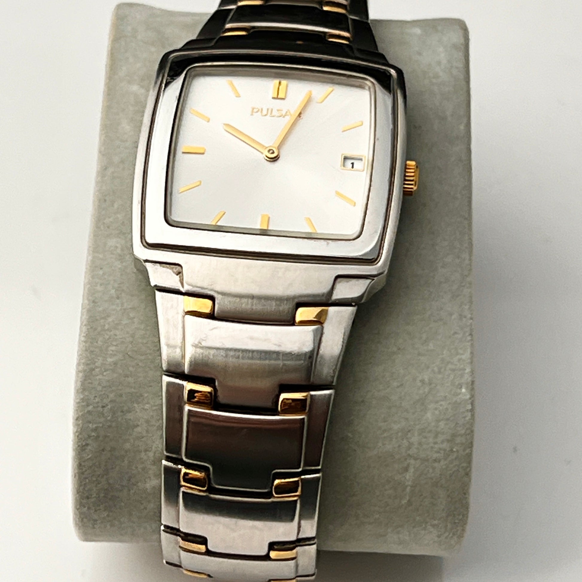 Seiko Pulsar Mens Tank Watch Two Tone Bracelet New Battery